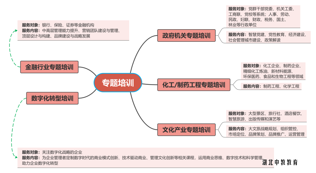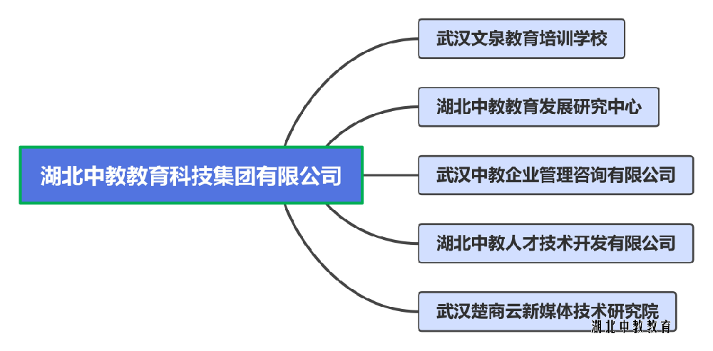 湖北中教教育集团是在湖北省人民政府提出建设人才强省,确立“人力资源开发首位地位”的重要思想指导下,在湖北人力资源和社会保障厅、湖北省教育厅等单位支持下成立的教育培训和人力资源开发综合服务平台。目前业务涉及教育培训、教育课程设计、学历教育、职业培训、专业技术人才评审、教育软件开发、党政干部培训、人力资源服务、新媒体技术研究等多个领域。